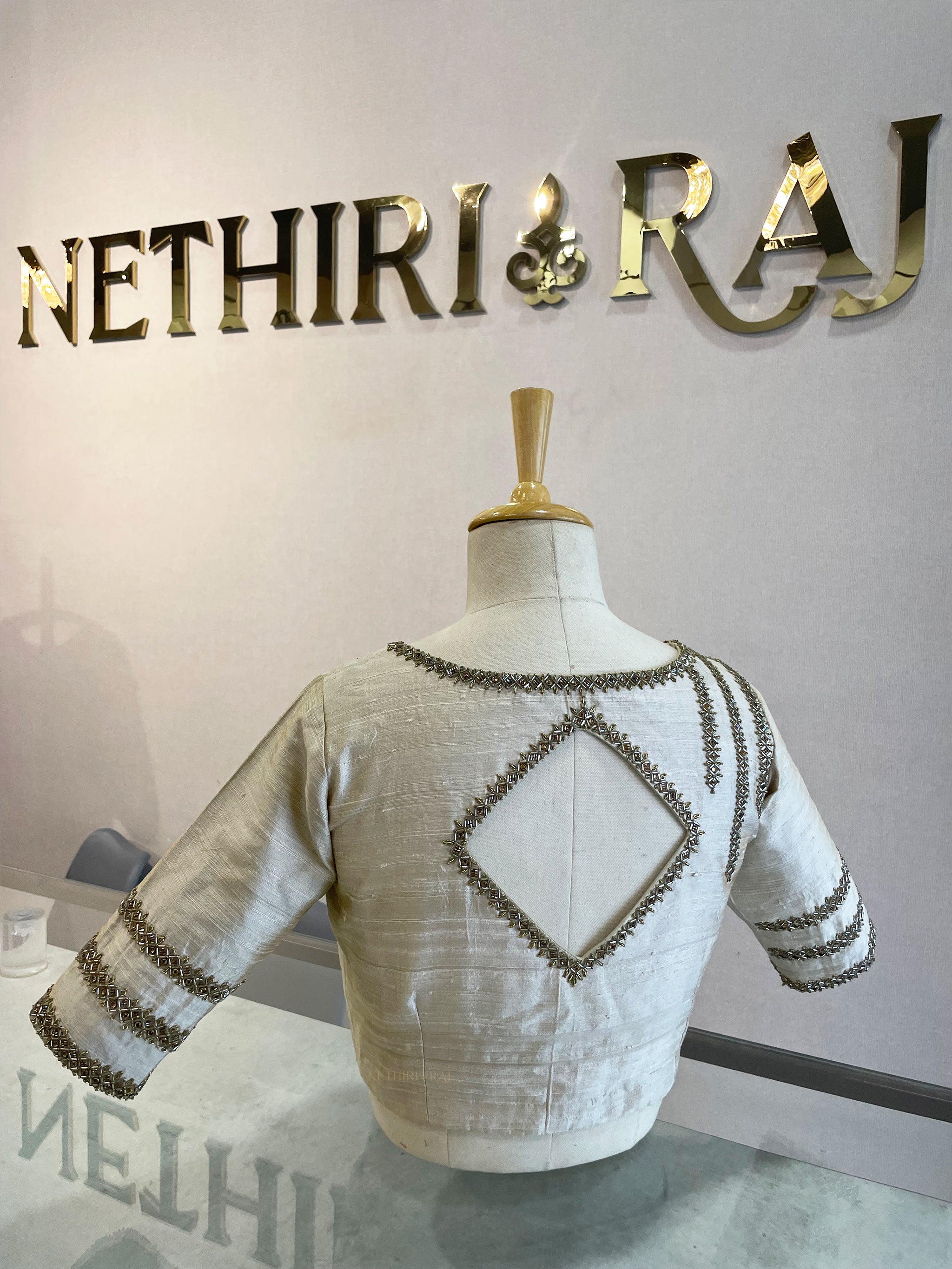 Crafted from the finest raw silk, this blouse exudes elegance and sophistication. The delicate embroidery adds a touch of opulence that will elevate any outfit.