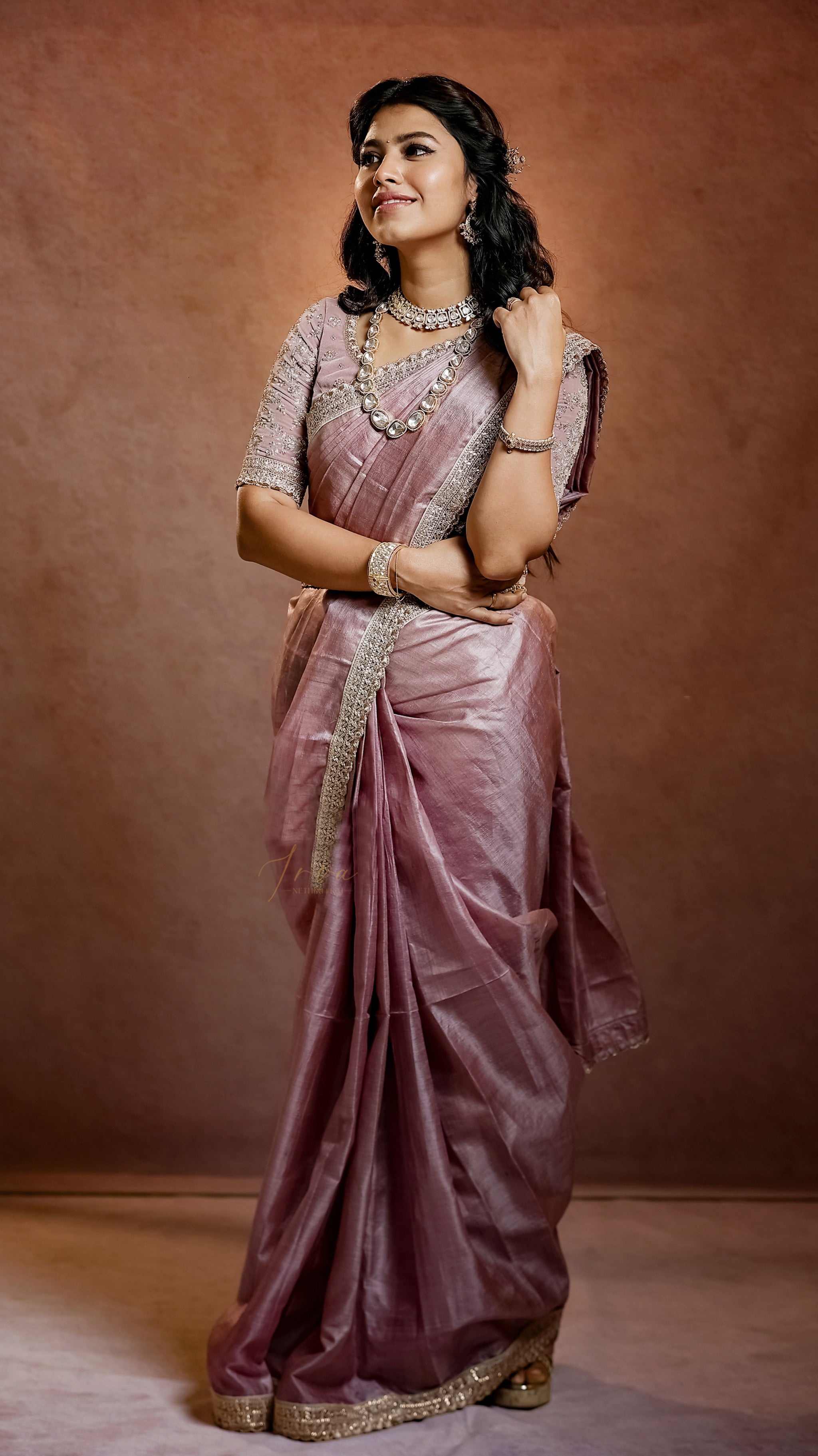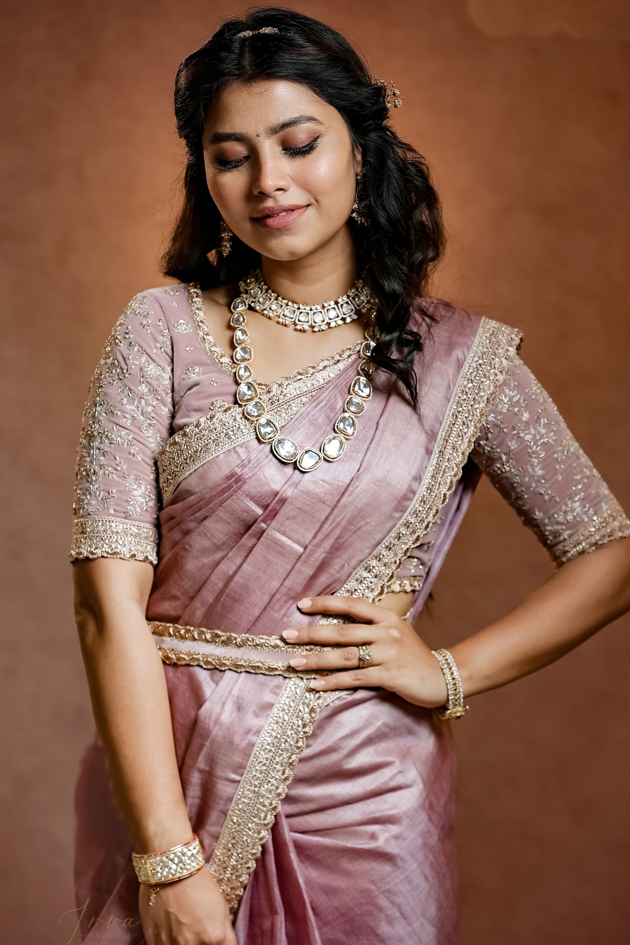 Experience luxury and sophistication with our Lavender Tussar Saree. Crafted from the finest tussar silk, this saree features a delicate lavender hue and a luxurious velvet blouse. Elevate your style and make a statement with this one-of-a-kind piece.