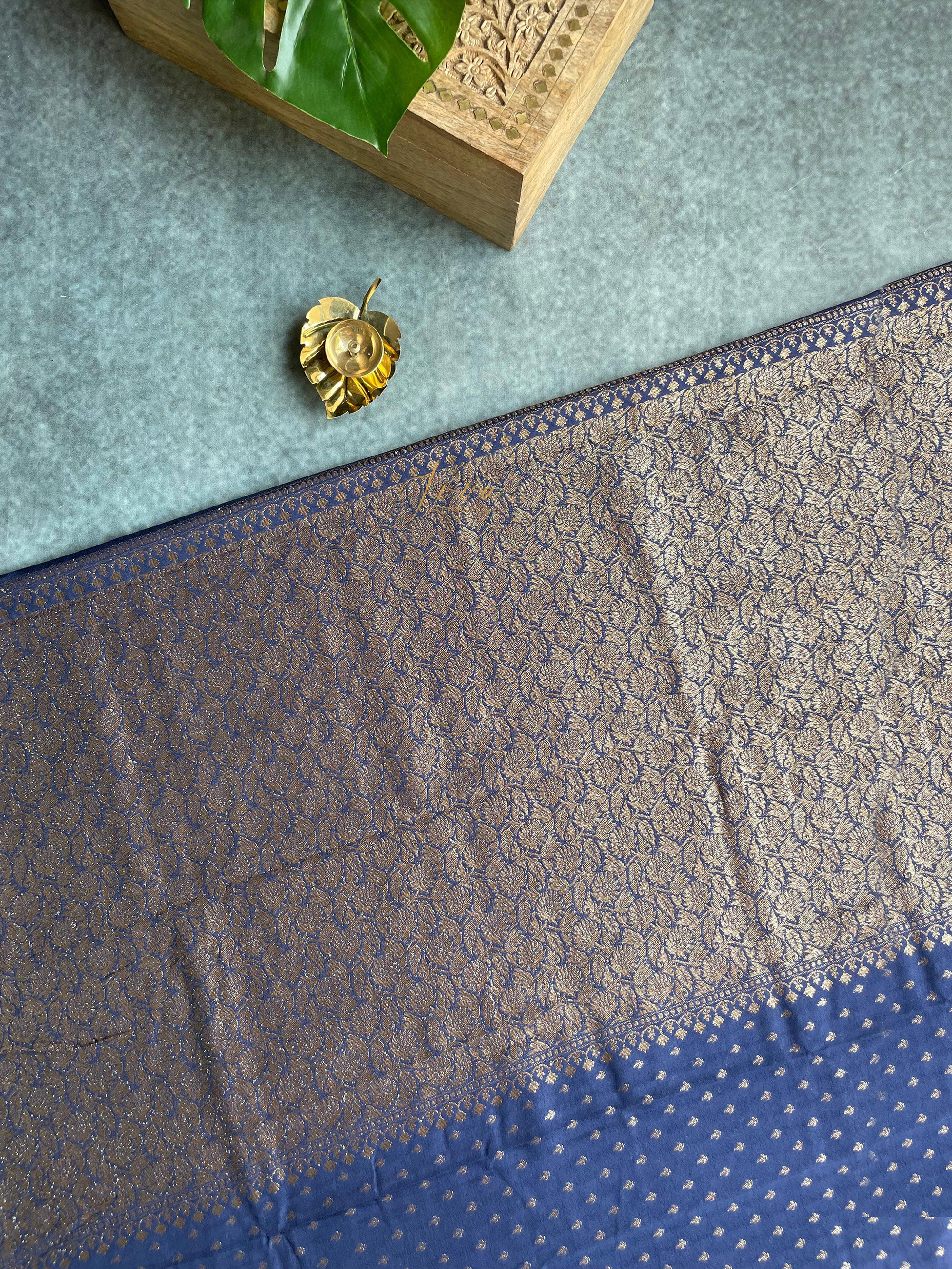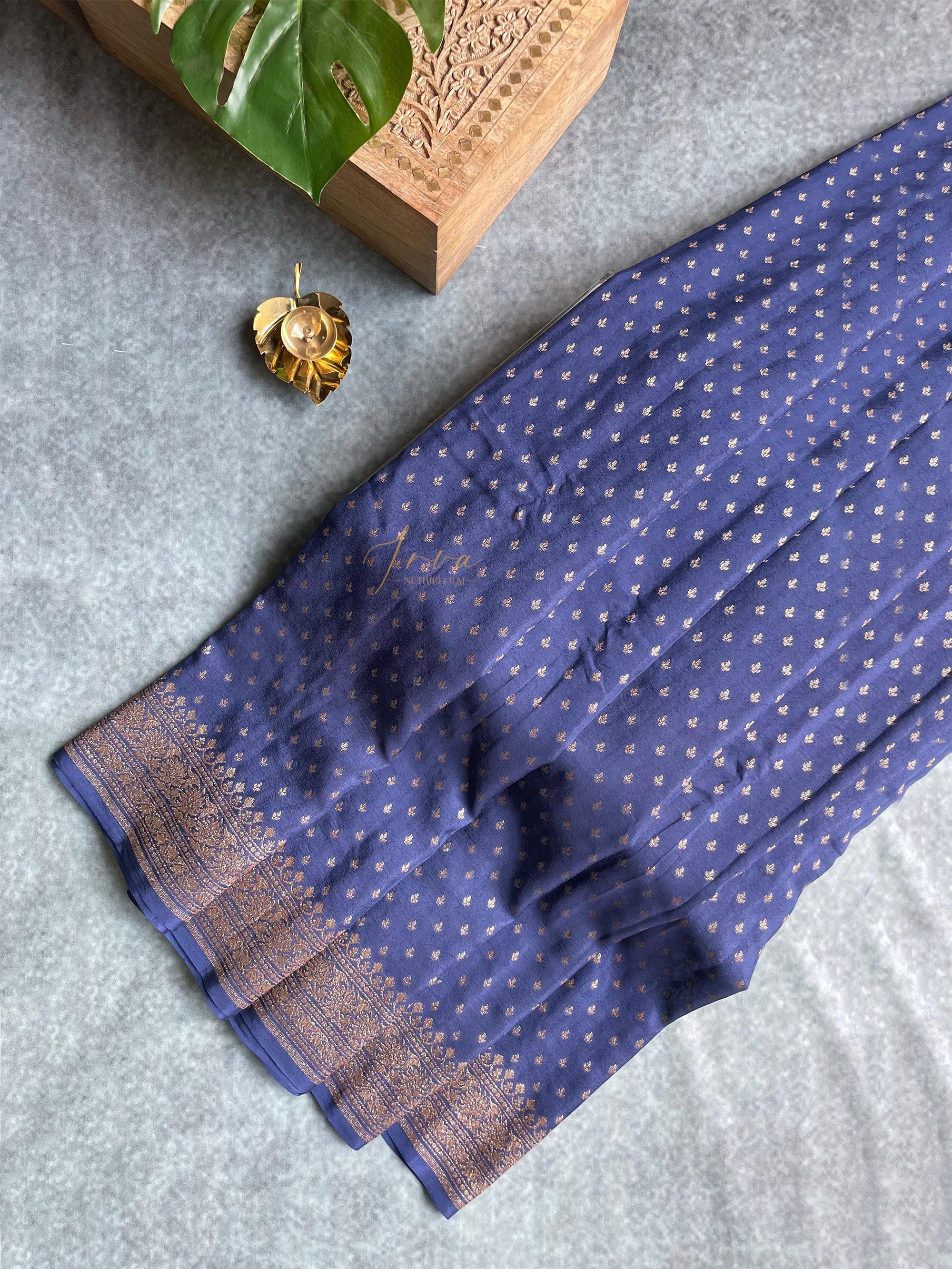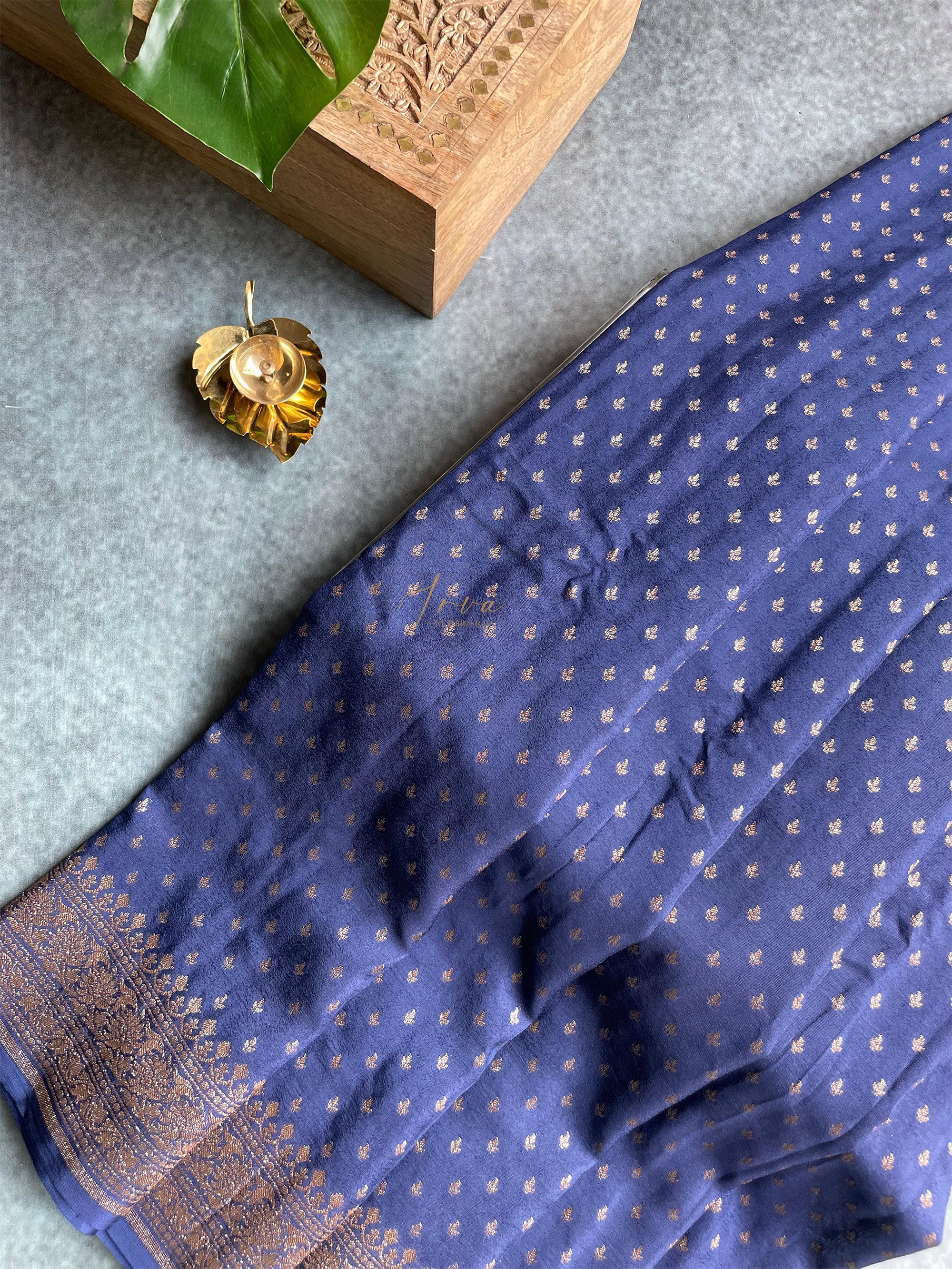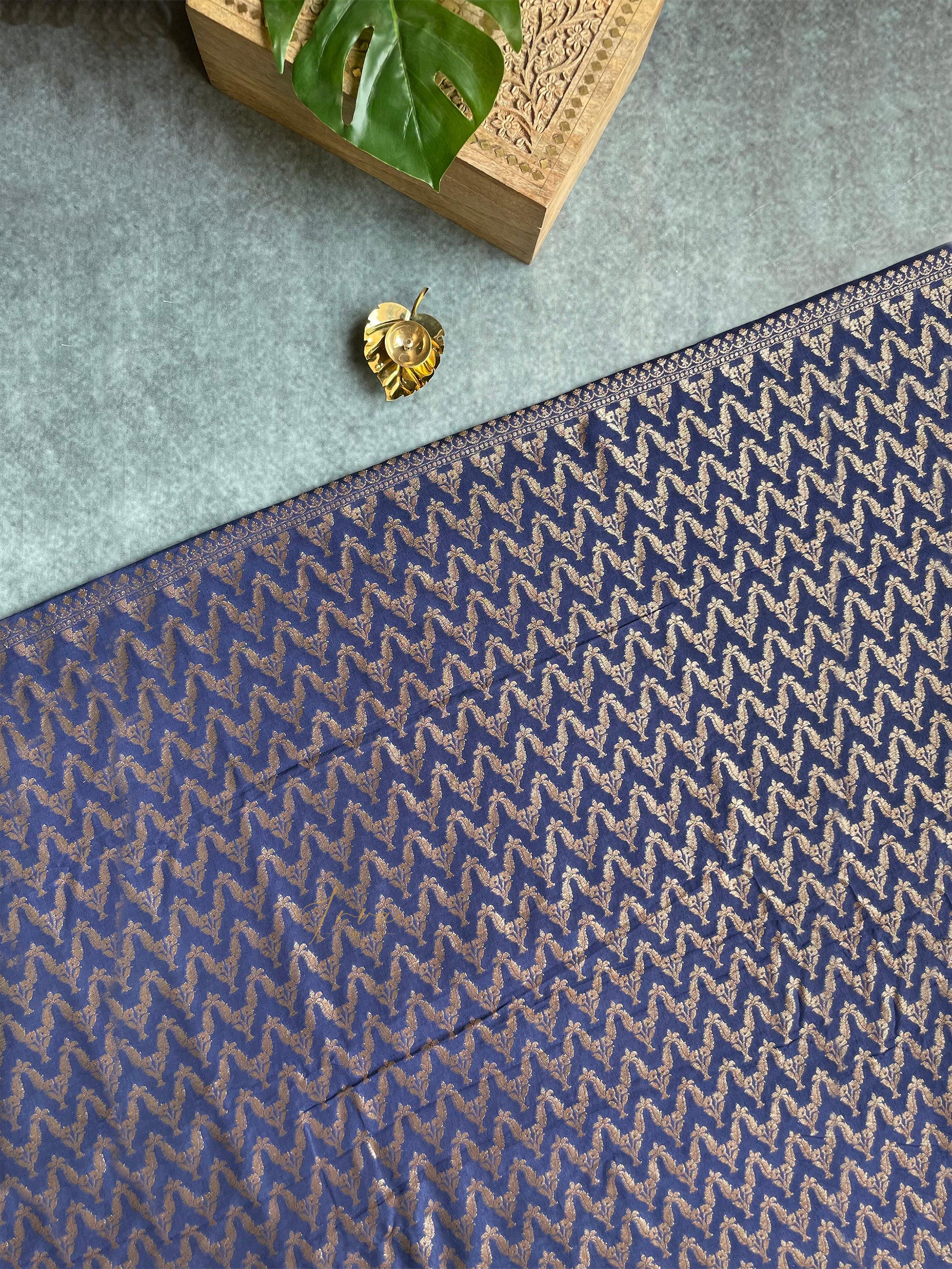 Indulge in a touch of luxury with our navy blue georgette Banaras saree. This exquisite piece evokes elegance and sophistication. Elevate any occasion with this timeless and exclusive saree.